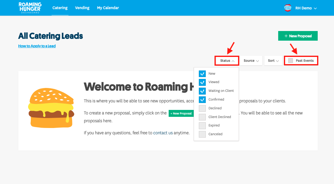 To cut down on clutter, your Dashboard hides certain event statuses by default. This guide will show you how to find them.On both your Leads and Public Events pages, there is a Status filter. By default, only the first four statuses are visible.