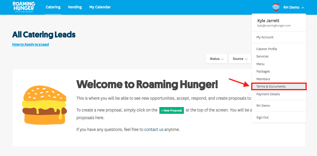 Once you have fulfilled all paperwork requirements, you will become eligible for all Roaming Hunger events. Next, check out the event listings on your Catering and Vending pages. The guides below will help you bid: