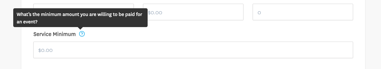 If you are receiving leads that are priced too low, enter a dollar amount under Service Minimum, to only receive leads with budgets that are above that amount. Please note that this number is payment for an entire event, not a per-person price.